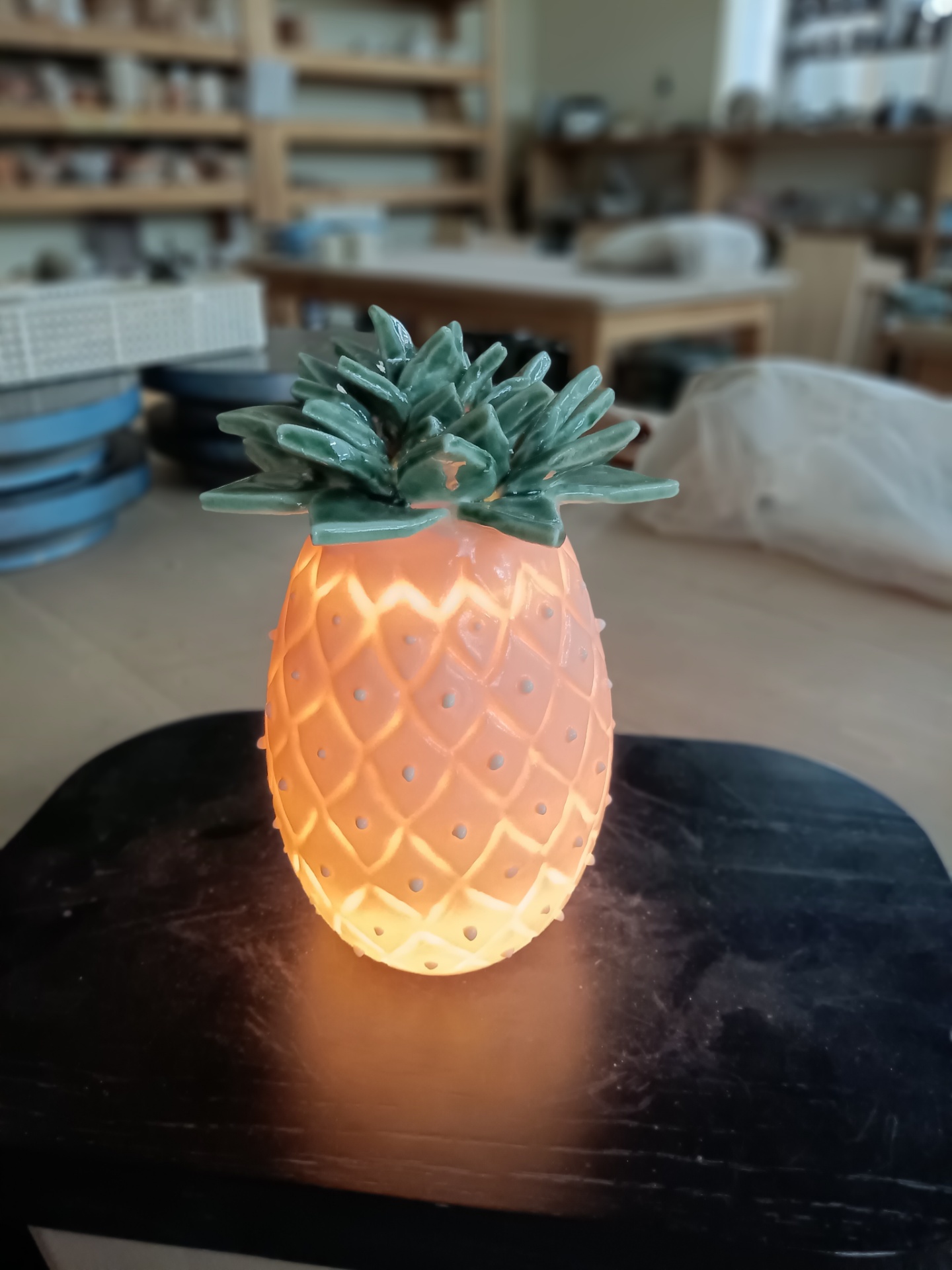 電球が暖色系の色合いだったこともあって本当にパイナップルのような色合いに。