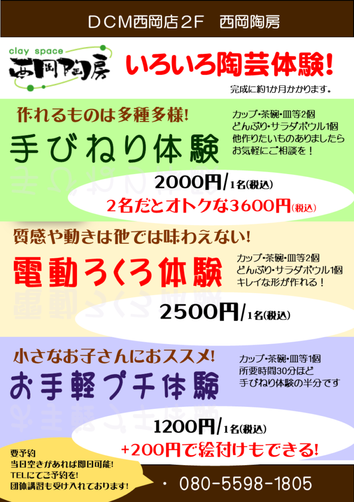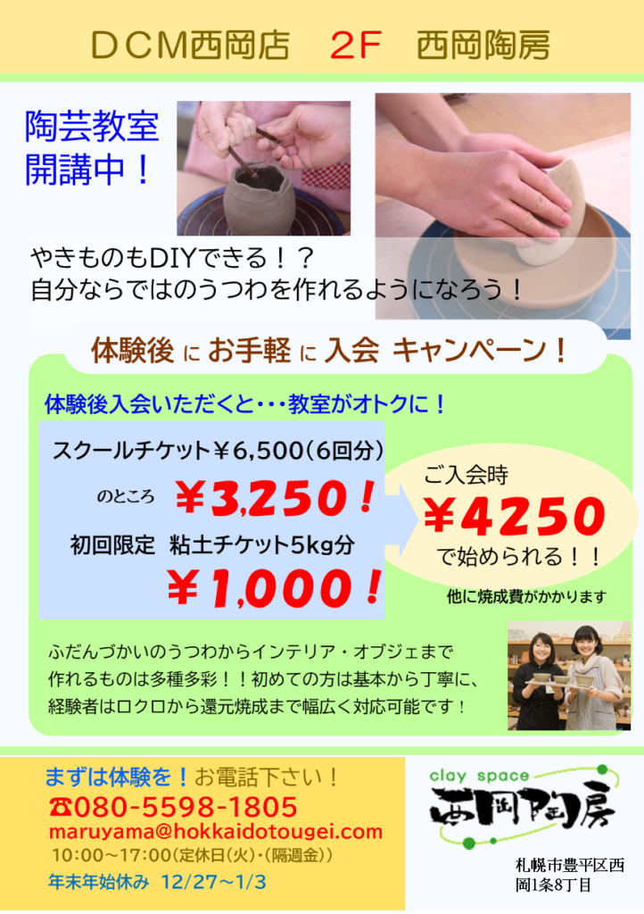 クレイスペース西岡陶房はDCM陶芸教室の1号店です。