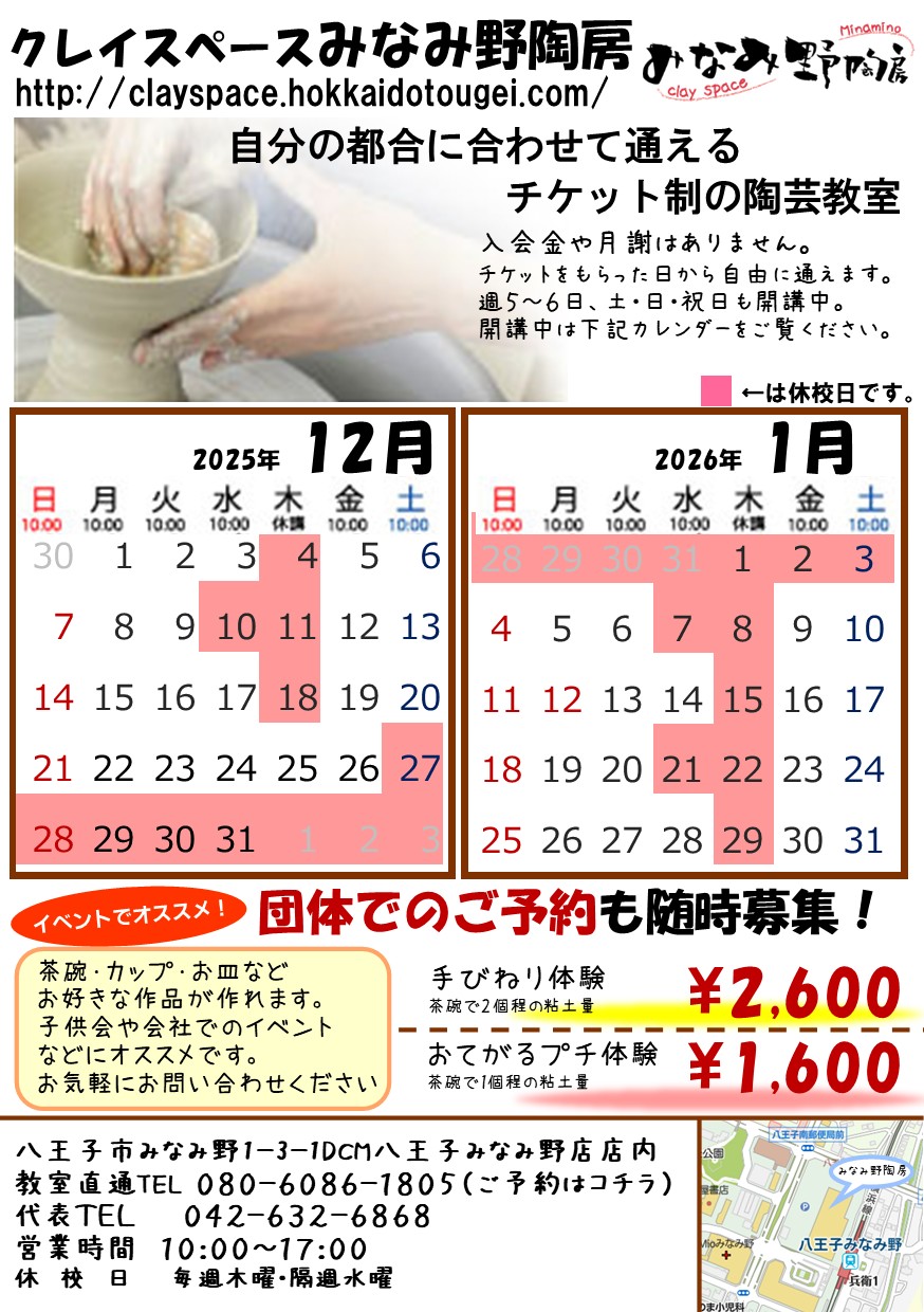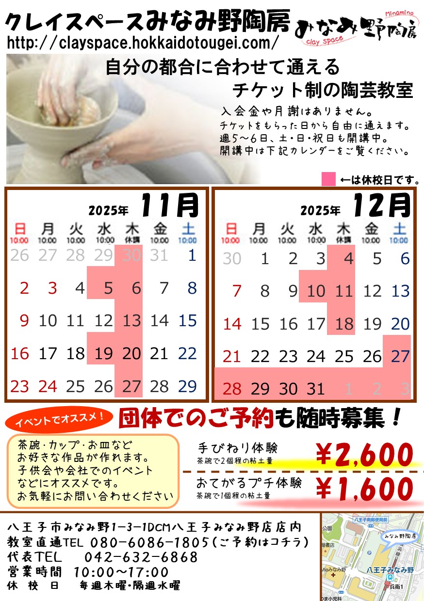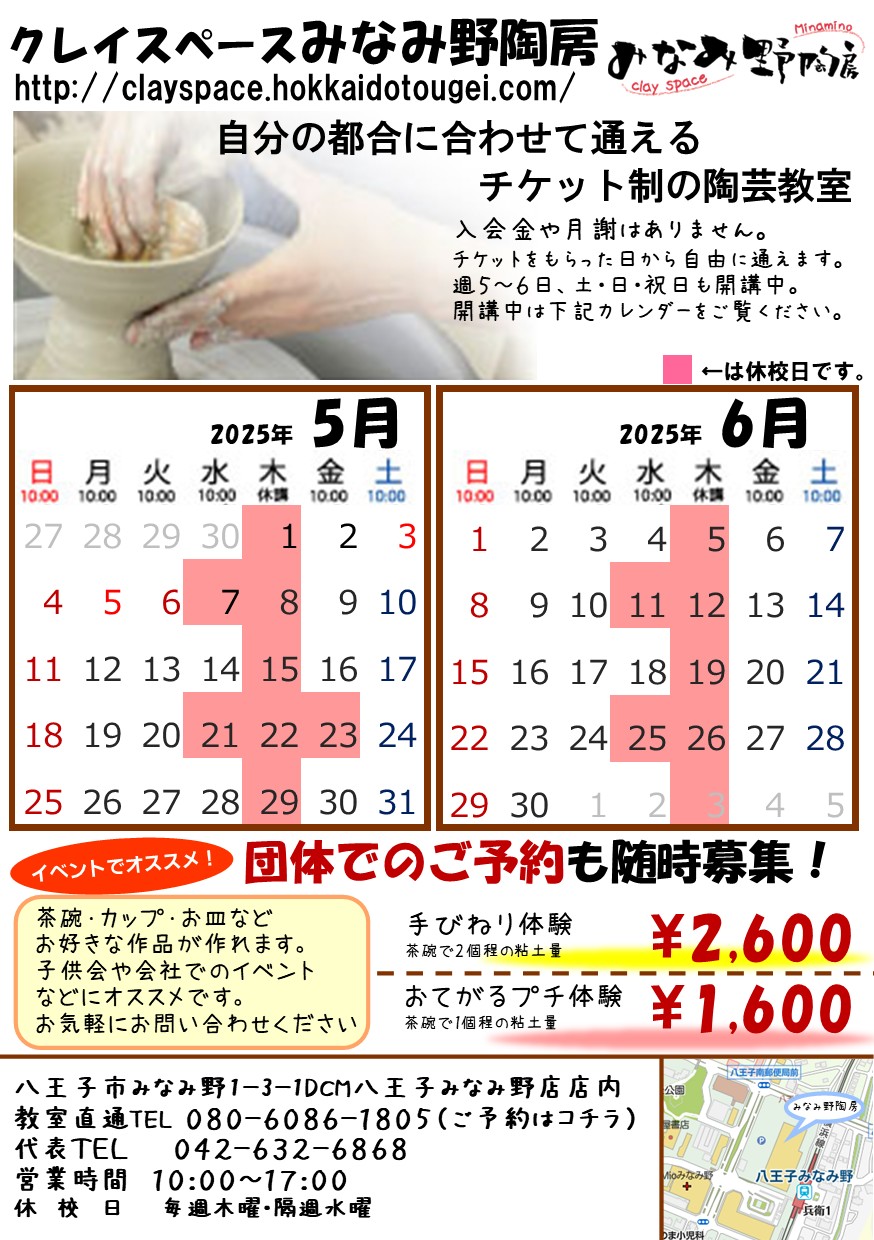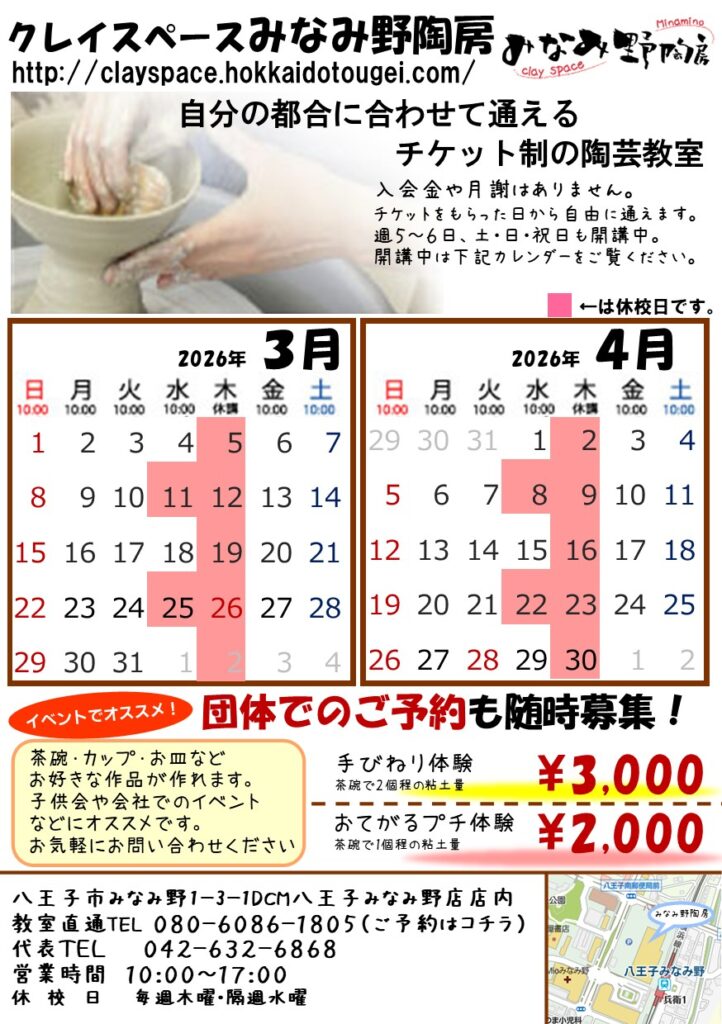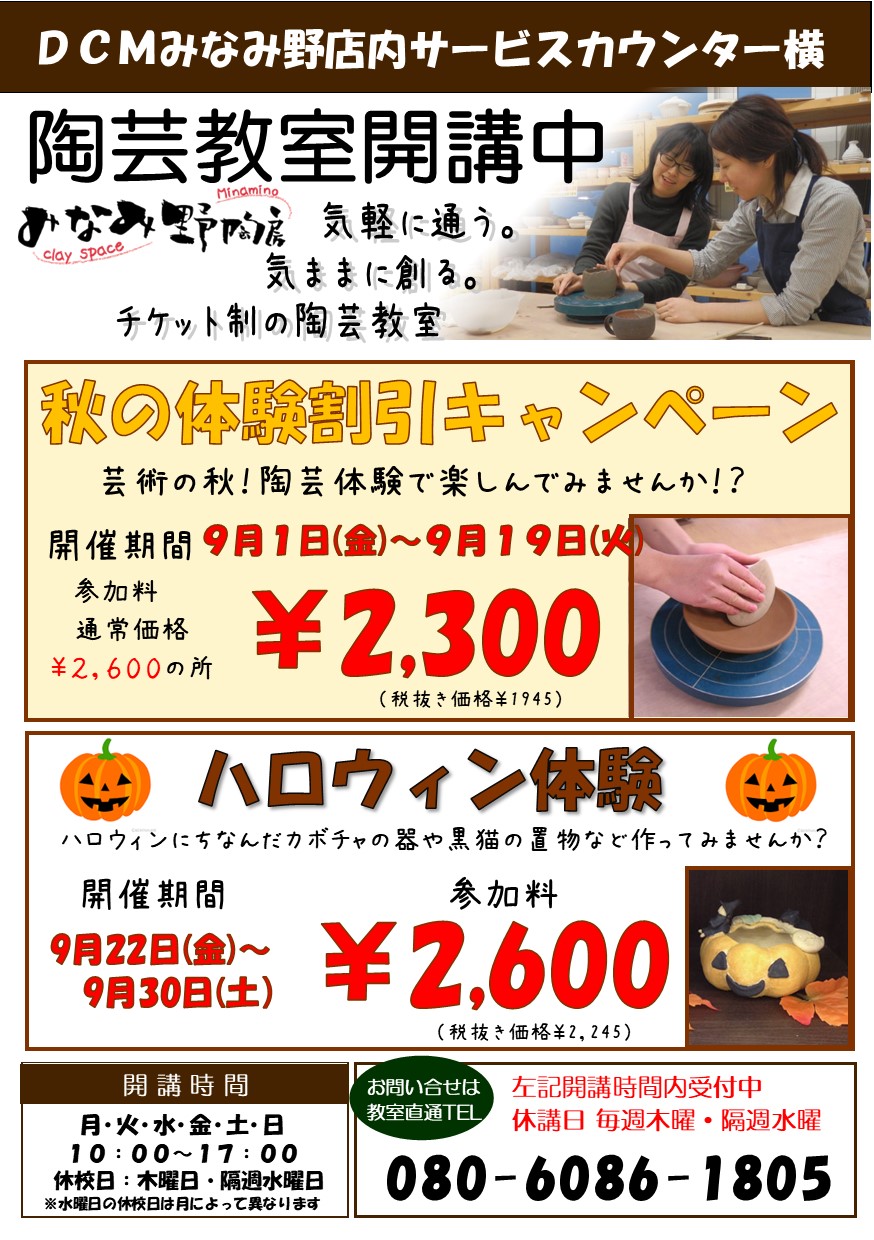 クレイスペースみなみ野陶房はDCM八王子みなみ野店で開講中の新しいスタイルの陶芸教室です。