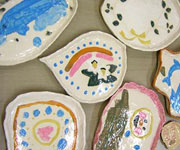 親子で絵皿作り カラフルな 色も付けられます(オプション) |